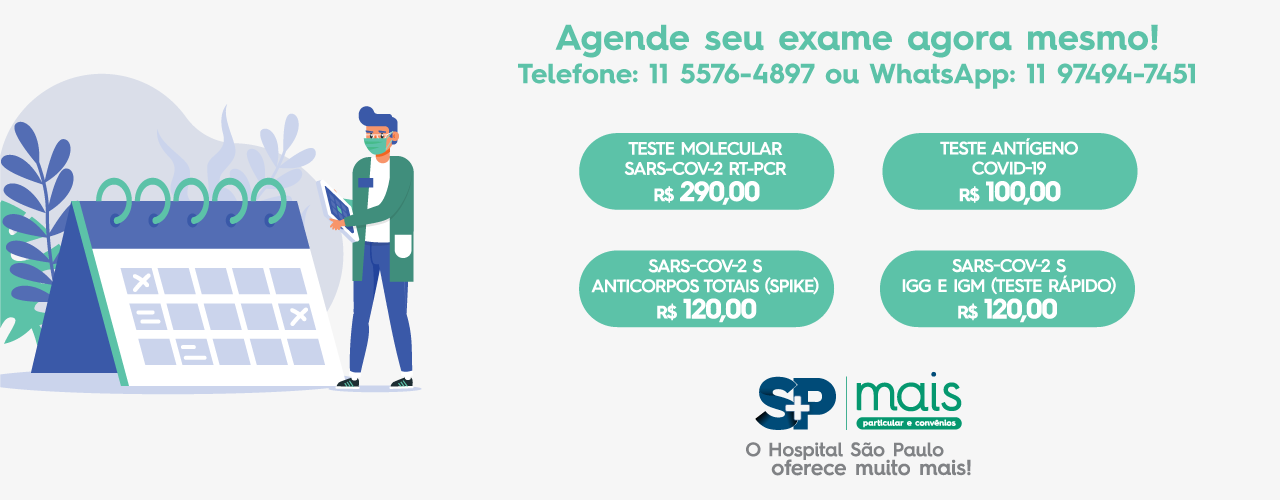 O HSP | Mais, em parceria com o Laboratório Central do Hospital São Paulo, está realizando os seguintes exames de detecção de Covid-19: